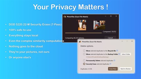 You could buy a bigger disk, buy more cloud storage, or spend hours/days/years going through the photos yourself, or you could use PhotoFiles Lite to recover that precious disk space today. Built from the ground up exclusively for Windows 10 & 11 using the latest technologies from Microsoft.