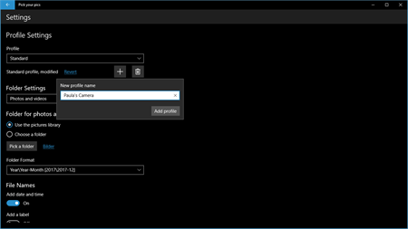Would you like to save photos and videos together, or do you prefer putting your video camera's recordings into a separate folder? Do you want to save photos from your kid's camera to a different location? Create profiles with different copy presets. The app will suggest the most recently selected profile for the camera connected.