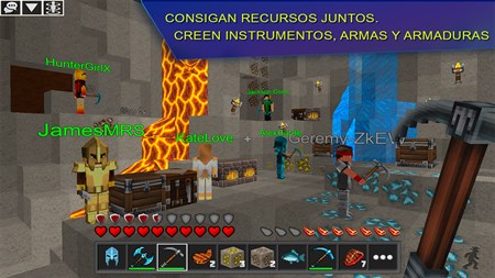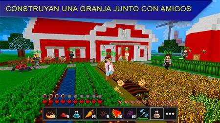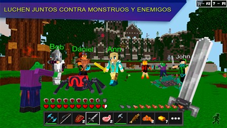 FUNCIONES DEL JUEGO: - Encuentre a nuevos amigos de todas partes del mundo en el multijugador online. ¡Añádalos a su LISTA de amigos! - Chatee en un chateo global con los jugadores de todo el mundo o solo con sus amigos. - Cree un equipo con sus amigos, construyan una base juntos para sobrevivir y protegerse de monstruos, jugadores y equipos. - Consiga recursos como madera, oro, diamantes y otros tipos de minerales y bloques. Cave, destruya y arme bloques de todo tipo. Haga instrumentos, comida, pociones para avanzar más rápido. - ¡Cultive plantas, críe animales, cree su granja! Empiece a cazar animales por su carne o cultive la tierra. - Fabrique las armas y armadura, cace con arco, explote dinamita, tire pociones explosivas. - Una excelente selección de bloques y packs de texturas le asegurarán un juego muy fascinante. Empiece a construir usando varios bloques, luego construya su casa, huerto, un gran imperio. Guarde sus edificaciones (alquilando porciones de terreno) y vuelva a ellas, o empiece a construir de nuevo en otro parte del planeta. - Examine palacios antiguos y reinos, casas y ciudades, aldea y bases, pixel art y otros objetos interesantes. - Configure su personaje al elegir el skin único de más de 160 skins disponibles.