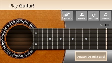 Play Guitar! transforma tu equipo Windows 8 en una guitarra virtual. Podrás presionar los trastes y rasgar cuerdas, tal como lo harías en una guitara real.
