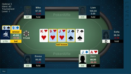 PokerAlfie isn’t unbeatable, but before playing for real money, play against PokerAlfie first and try to understand why you win or why you lose.