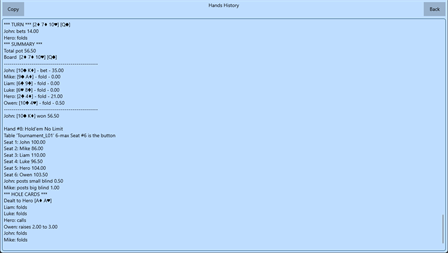Hands History (trust and transparency): PokerAlfie prioritizes trust and transparency, exemplified through its integration of the 'Hands History' feature. This unique addition allows players to review all actions and cards played by the opponents at the end of each hand, promoting a fair and transparent gaming environment. With PokerAlfie, you can rest assured that honesty and integrity are at the forefront.