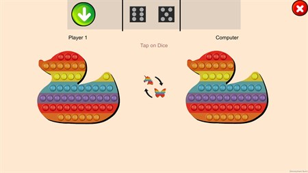 Pop it Ludo is two player game. You can also play with computer. Just tap on dice to roll it and will give you random numbers between 1 to 6. Pop the number of bubbles you got by rolling dices. Keep popping until you finish all the bubbles. The one who finish popping all the bubbles first would be a winner of the game.
