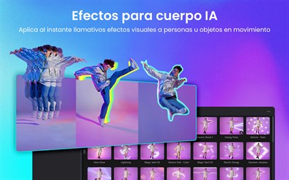 La tecnología IA hará el trabajo duro por tí: • Transcripción de Voz a Texto IA: Procesa diálogos y añade subtítulos con herramientas automáticas. • Asistente de Restauración IA: Detecta al instante ruidos no deseados y restaura tus clips de audio en un sólo clic con herramientas recomendadas. • Rastreo de Movimiento IA: Añade texto, gráficos y efectos que sigan objetos con precisión casi perfecta en tus clips, siguiendo el movimiento cuadro a cuadro.