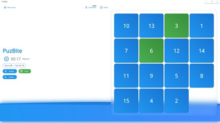 PuzBite is a is a combination puzzle that challenges a you to slide the tiles along certain routes to order them in numerical, alphabetical order or reveal the hidden picture.