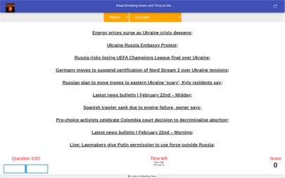 Use this App to Read or Listen to Clean Uncluttered Breaking News and Elevate your Brain with Geography and History Trivia about the News and about your favourite city or country or continent.