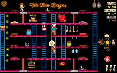 Quick Mac is a cook trying to make his own burgers. He is disturbed by the various ingredients. To help, Quick Mac can get pans that paralyze ingredients for a period of time and enable the chef to collect them. All 25 levels, which offer different challenges, must be completed. Results are presented in a local HiScore table. The top 100 top performances are listed in the International HiScore table.