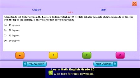 This app is FREE and is for kids in grade 9. The app enables you to perfect your maths and english skills on the go on your smart phones and tablets.