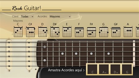 Rock Guitar! te ayuda a aprender los acordes básicos para tocar la guitarra. Es una herramienta muy útil para todo aspirante a guitarrista.