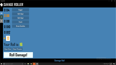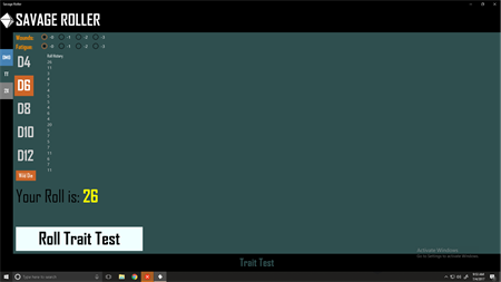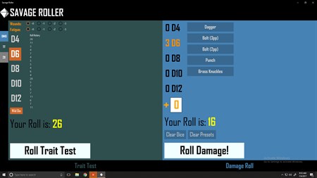 Savage Roller is a Savage Worlds dice-rolling utility for GMs and players alike. Swap between Trait Tests and Damage rolls