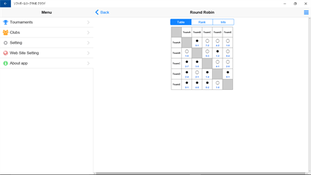 ■Round robin - Max 30 clubs - Max 5 repeats. - Show game distance - Order by win ratio