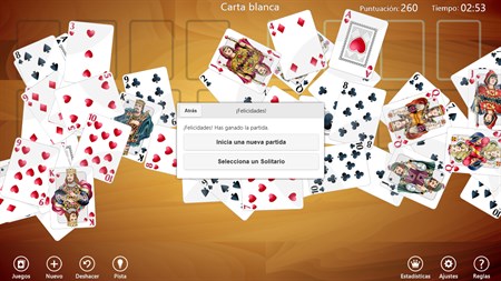 Solitarios Cartas es una colección 100% gratis que te permite jugar 9 desafiantes juegos de solitario, incluyendo: Carta blanca, Solitario, Solitario (3 cartas), Golf, Pirámide, El Tontorrón, Spider (4 palos), Spider (2 palos), Spider (1 palo).