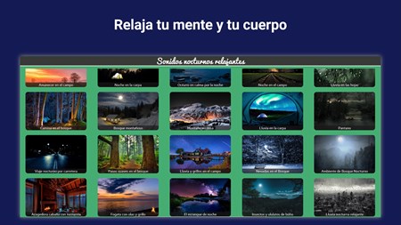 La aplicación reproduce diferentes sonidos de la noche, los sonidos reproducidos de esta forma también se conocen como ruido blanco. El ruido blanco tiene efectos beneficiosos para el cuerpo y la mente porque, al tapar el ruido del ambiente externo, favorece la relajación y la concentración.