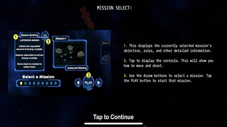 Complete 9 space missions — collect energy crystals, defeat enemy ships, steer carefully to avoid obstacles, and protect your base.