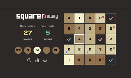 Un-shuffle the grid by swapping tiles. The number on a tile indicates how many squares away (horizontaly + vertically) the tile is from its destination.