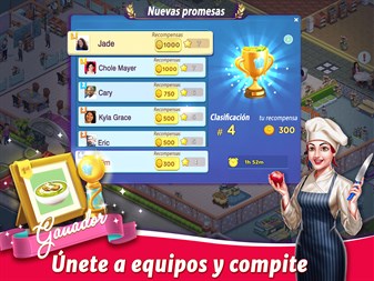 De los creadores del gran éxito culinario internacional Star Chef, llega un nuevo juego de cocina que potencia el legado de una elegante experiencia culinaria de alto nivel y la adapta a la vida moderna de los chefs. ¿Qué haces cuando tu restaurante de ensueño se pone a la venta? Compra, reconstruye y transfórmalo en el paraje culinario más famoso de la ciudad. Características: • UNA HISTORIA INTRIGANTE: Más de 80 misiones de historia por las que avanzar y en las que vivirás la vida del chef. • MÁS DE 200 PLATOS ESPECIALES, desde hamburguesas y pizzas a frittatas y gofres. • PERSONALIZACIÓN: Elige entre diseños únicos, ya sean decoraciones para las paredes y el suelo o excepcionales adornos para conseguir que tu restaurante destaque sobre los demás. • PERSONAL INTERNACIONAL con unas excepcionales dotes culinarias. • EQUIPOS DE CHEFS: Crea equipos, habla y forma equipo con chefs para participar en torneos. • CHEFS MAESTROS: Compite contra chefs reales en torneos de habilidades y llega a lo más alto de los marcadores. • CURIOSIDADES: Aprende divertidos hechos históricos sobre los platos y delicias que preparas. • JARDÍN DE VERDURAS: Cosecha productos frescos en el patio de atrás para tenerlos disponibles en cualquier momento. • TREN: Carga cultivos y platos para desbloquear herramientas de mejora al regresar. • LA TIENDA DEL CHEF Y CAMIONES DE COMIDA, para intercambiar platos, verduras y recetas secretas. • SERVICIO DE CÁTERING para no limitarte a ser un restaurante normal y corriente.