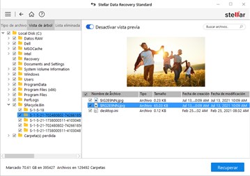 Recuperar archivos borrados en Windows ahora es tan simple como unos pocos clics recuperar sus documentos borrados, correos electrónicos, carpetas archivadas, fotos, videos, audio, etc., de todo tipo de medios de almacenamiento, incluyendo los modernos discos duros 4K con Stellar Data Recovery Standard. Recupera datos de unidades corruptas, SSD y volúmenes encriptados con BitLocker. Es compatible con todas las unidades o particiones formateadas con el sistema de archivos NTFS, FAT o exFAT. La Edición Estándar es una licencia de por vida que permite el uso del producto durante 10 años.