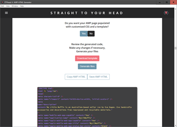 This is the free version of Straight To Your Head, a boilerplate generator for Google AMP-HTML. The free version customizes your: - AMP-HTML page - Sitemap - Image Sitemap - Humans and Robots files