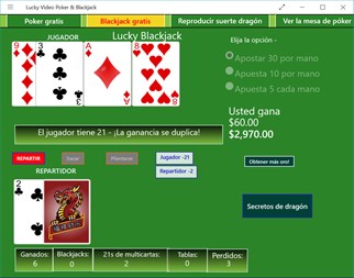 Lucky Video Poker y Blackjack es una colección de 3 juegos estilo casino: Juego 1 - “Lucky Dragon” es un tercer juego en la aplicación disponible para su compra después de 25 juegos gratis. Este juego es una variación exclusiva de video póquer de casino, donde puede jugar tres manos diferentes de póquer a la vez; o bien, probar su suerte con tres de la misma mano. Usted controla la dificultad y elige el número de Lucky Dragons (comodines) que aparecen por baraja, de cero a cuatro. Las probabilidades de comodines aumentan, por lo que seguro ganará en esta divertida adaptación. ¡Gratis! Juego 2 - “Lucky Video Poker” es un juego de 2 manos con probabilidades de Las Vegas que simula una máquina tragamonedas de video póquer. Comience con 3,000 créditos para jugar dos manos de póquer en cada ronda, con sus ganancias o pérdidas guardadas a medida que avanza. Puede añadir 1,000 créditos a su saldo en cualquier momento, solo haga clic en “Get More Gold”. ¡Gratis! Juego 3 - “Lucky Blackjack” es una versión rápida de blackjack con mejores probabilidades ya que juega con fondos ilimitados. El juego de Blackjack no es su juego de casino común, y tiene funciones que favorecen al jugador en lugar del crupier. ¡Gratis! ¡Buena suerte! El dragón afortunado te espera...