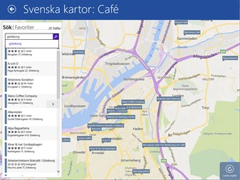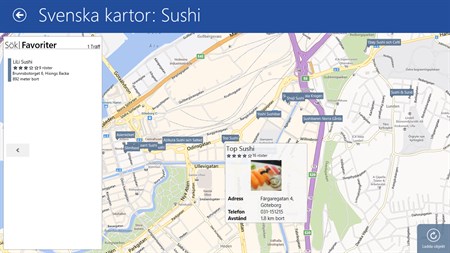 Svenska kartor bygger på data från allakartor.se av Ted Valentin och visar användargenererade bilder och recensioner från de olika platserna.