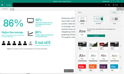 -- Agrega contenido desde cualquier lugar -- Coloca fácilmente fotos, vídeos y otros elementos multimedia: Sway se integra con tu dispositivo, tus redes sociales y la web.
