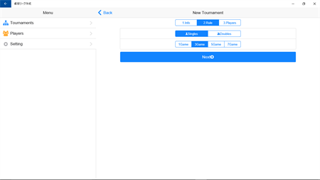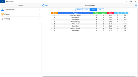 Make "Round Robin" and "Knockout" small tournaments easily. In the club , with friends , you can enjoy to make a tournament.
