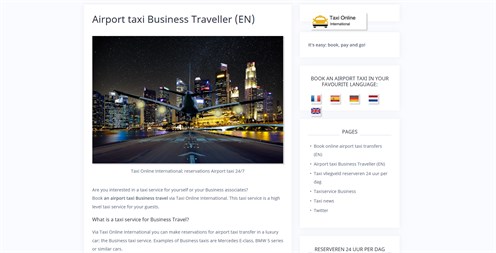 Book online airport taxi transfers with Taxi Online International. Taxi services at more than 1100 airports, railway stations and service locations.
