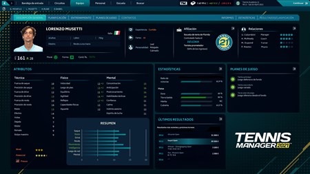 Crea tu equipo Deberás tener en cuenta los puntos fuertes y débiles de cada jugador para reclutarlos y sacar lo mejor de ellos. El comportamiento de los jugadores dentro y fuera de la pista está regido por decenas de parámetros. El estilo de juego, la superficie favorita, la morfología, el estado de ánimo, la condición física: todos estos factores hacen que cada jugador sea único. Como mánager, tendrás a tu disposición una serie de herramientas analíticas que te ayudarán a comprender mejor a tus jugadores y seguir su evolución.