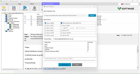 Limitation: Demo version enables you to preview and save 30 items into MBOX File format, EML, MSG, PST and import office 365 mailboxes account and others selected format.