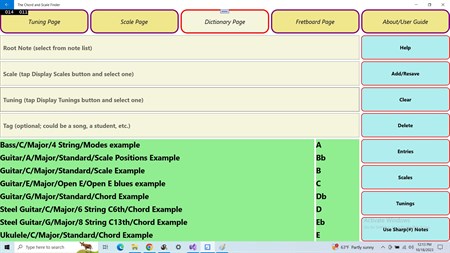¡Bienvenido al Buscador de acordes y escalas! Esta aplicación fue diseñada para ayudar a los guitarristas de acero que necesitan navegar por afinaciones inusuales, pero se ha hecho evidente que también puede servir como una navaja suiza para cualquier instrumento de cuerda. ¿Interesado en tocar jazz en un bouzouki o oud usando la escala armónica menor o tocar heavy metal en una guitarra de 8 cuerdas en alguna afinación oscura que sólo usted conoce? ¡¡Entonces este es el producto para ti!! Alternativamente, si recién estás comenzando a tocar la guitarra, el ukelele, el bajo o cualquier otro instrumento de cuerda, puedes crear bibliotecas de capturas de pantalla que muestren todos tus acordes y escalas usando notas y/o tonos de acordes y escalas para una referencia rápida. Puede encontrar información detallada sobre cómo utilizar el producto en el sitio web de 69th Street Band (69thstreetband.com/the-chord-and-scale-finder/). Si tiene preguntas específicas, diríjalas a csfinder@69thstreetband.com. La aplicación viene precargada con muchas afinaciones y escalas, pero los usuarios pueden agregar las suyas propias. Cuando una afinación y una escala se combinan con una nota fundamental, se crea un elemento de diccionario. Estos elementos se pueden mostrar en el diapasón de la aplicación de infinitas maneras y guardarse como instantáneas. Los usuarios pueden bloquear ciertos trastes si desean profundizar en escalas o acordes en diferentes partes del diapasón. La aplicación, cuando se usa correctamente, puede acelerar enormemente la curva de aprendizaje de cualquier instrumento de cuerda.