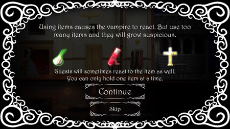 The aim of this game is to figure out which guests are vampires within the allotted time, and kill them. The death of innocents is completely unacceptable so make sure you identify your targets correctly, but don't take too long or it will be feeding time!
