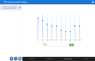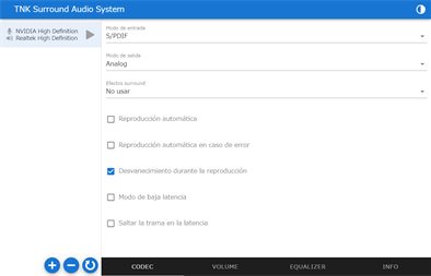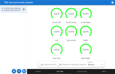 "TNK Surround Audio System" es una aplicación de servidor de audio especializada en audio surround. La salida de mezcla de audio envolvente puede realizarse fácilmente utilizando un adaptador de audio USB.