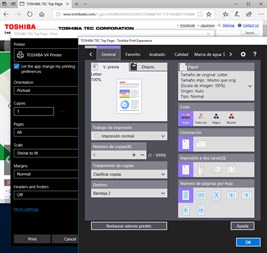 Toshiba Print Experience ("Aplicación") proporciona funciones de impresión adecuadas para el control de las impresoras multifuncionales ("MFP") TOSHIBA e-STUDIO. Esta Aplicación le permite establecer configuración detallada cuando imprime un documento a través de aplicaciones de la Tienda Windows. La Aplicación también le permite ver opciones de configuración del MFP de forma remota. Consulte el menú Ayuda de la Aplicación para obtener más información. Para usar esta Aplicación, instale previamente el "Controlador de impresora Toshiba V4" en el PC. Asegúrese de leer el archivo "Léame" del Controlador de impresora Toshiba V4 para confirmar los modelos de MFP compatibles y condiciones relacionadas. Para usar o instalar esta Aplicación, debe aceptar las condiciones del Contrato de licencia de usuario final ("CLUF"). Lea el CLUF detenidamente antes de usar o instalar esta Aplicación. SI NO ACEPTA LAS CONDICIONES DEL CLUF, NO INSTALE, COPIE NI USE ESTA APLICACIÓN. Nota: Toshiba TEC no recopila información personal, como datos de escaneado o impresión, a través de esta Aplicación.