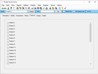 Tracker Ten for Arms is a powerful program that helps you manage your Firearm, Gun, Knife, Sword and collectible Weapon Collection. It's great for insurance inventory and it can keep track of firearm serial numbers in your gun locker or collection. The software features a powerful search engine, a report writer, collection value tracking (based on values you enter yourself), item history tracking, item accessory tracking, a spreadsheet view, a graph generator, an album view, barcode generation and scanning, multiple image support and context sensitive help. The software can also generate full color reports, incorporating images, great for accurate insurance record keeping. You can also easily customize the software to suit your individual needs.