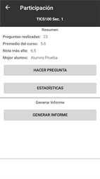 Finalmente, la aplicación puede crear informes completos en excel tanto de la asistencia como de la participación de cada curso. Todo de manera rápida y sencilla.