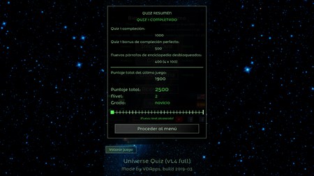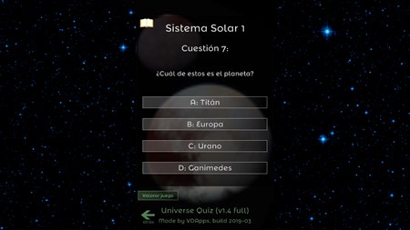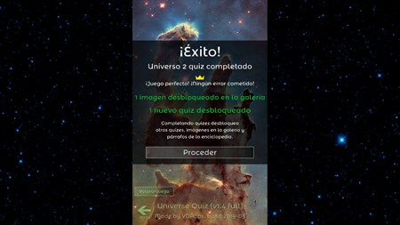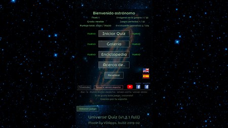 El juego de tipo quiz para todos interesados en la astronomía, las estrellas, el cielo nocturno, el universo. Prueba tus conocimientos sobre la astronomía y mejoralos. Contesta a muchas cuestiones, aprende nuevas cosas y progresa en el juego hasta el nivel más alto. Rellena la enciclopedia y galería de imágenes maravillosos jugando este juego educativo.