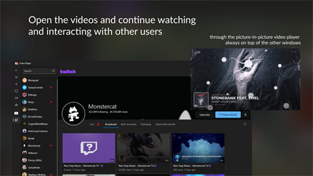 Transforma tu navegación en línea en una experiencia de entretenimiento interactivo con uView Explorer. Con nuestro reproductor de video flotante, puedes disfrutar de los mejores videos de tus canales favoritos de Twitch, YouTube y Dailymotion sin tener que abandonar la página en la que estás.