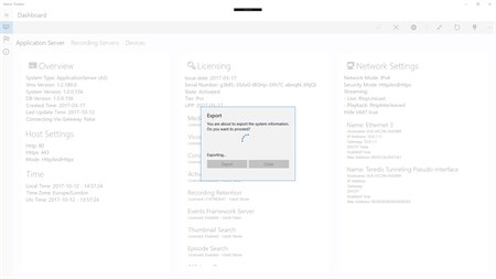 Main features: - Overview about the whole CCTV system - Exporting the System Information - Exporting the AppServer & NVR's Logs locally and remotely - Receiving and sorting events for the AppServer in real time - Manage the VMS locally or remotely - Reboot the VMS services locally remotely - Checking the servers availability periodically - The servers and devices network details from one place - The devices streams and snapshots make the troubleshooting easy and much more features...