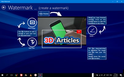 Protect your videos by adding your preferred logo, image or photo inside them, or just write your own message into. If you ever wanted to add your own Logo or Message inside your videos, or you just want to create a TV Product style for your personal videos, then the Video Watermark app. is here for you… Video Watermark helps you to create wonderful watermark-style backgrounds and apply them in your video in two simple steps. Save the (new) watermarked video and share it immediately with your friends! The app. supports all video formats as source videos to begin. When creating your own watermark, you are able to apply as many images or messages you want. Transparent logos are welcomed. Drag-and-drop them in your watermark or resize them. A full preview is always available without the need of creating new video each time. When you are satisfied with the result, apply the watermark and a new (watermarked) video will be created in MP4 in the folder you want. The new video keeps automatically the dimensions of the initial video without re-sizing or quality lost. The app. supports almost every different video file format that exists (.mkv, .webm, .flv, .3gp, .mpg, etc...). You are able to share immediately the new watermarked video with other users and apps with the "Share.." option (Email, YouTube, etc..). The app is completely free without any extra charges!