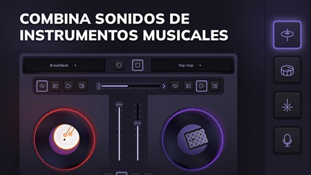 Deja que «Virtual DJ Console» te ayude en tus objetivos de creación musical. Sea creativo con el conjunto profesional de herramientas a su disposición: mezcla ritmos y melodías pregrabados y aplíqueles efectos sorprendentes, ¡usando divertidas herramientas de mezcla y más!