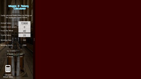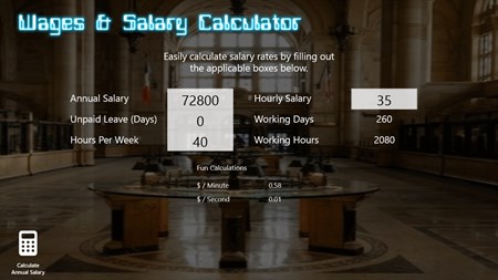 Easily and Quickly calculate hourly wages from an annual salary or annual salary from hourly wage.