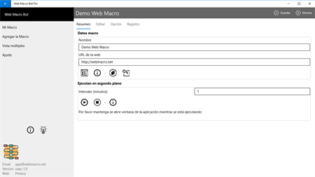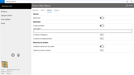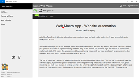 Web Macro Bot le ayuda a registrar acciones de páginas web y eventos de reproducción automáticamente. Puedes grabar y editar eventos muy fácilmente. Es para todos, no hay programación complicada. Todos los eventos se capturan como javascript para simular las acciones del usuario.