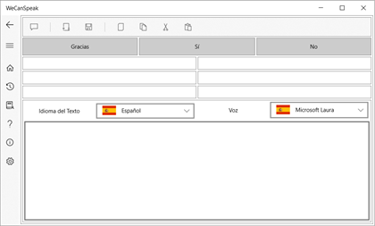WeCanSpeak Pro es una aplicación avanzada de texto a voz (TTS) diseñada y desarrollada exclusivamente para optimizar el proceso de comunicación. Hecho por aquellos con necesidades especiales para aquellos con necesidades especiales, tiene algunas características diferentes como: diccionario personalizado por el usuario que permite no solo la inclusión de palabras, sino también oraciones completas, un motor de búsqueda avanzado, que brinda total libertad de escritura para el usuario, con mayúsculas, minúsculas, acentuado o no, historial de conversación, lo que hace innecesario volver a escribir frases previamente escritas, grabación de audio MP3, que le permite enviar mensajes de voz en aplicaciones como WhatsApp y Facebook Messenger, y lee y escribe archivos de texto, lo que permite al usuario escribir textos largos en su editor favorito, como Microsoft Word, por ejemplo. Además, tiene la función de traducción de idiomas, con la cual el usuario puede escribir el texto en su idioma nativo y hablar en cualquier otro idioma (Debe tener una conexión a Internet activa y una suscripción gratuita o de pago al servicio de Microsoft Azure).