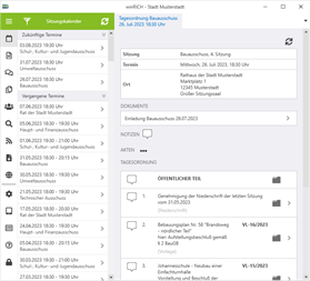 Anzeige der Tagesordnung - Informationen zum Tagesordnungspunkt inkl. Vorberatungen und Beschlüssen - Zoomfunktion