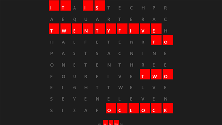 Word Clock 8 shows the current time by simply highlighting existing words in a grid of characters.