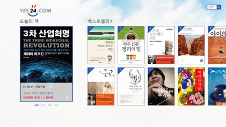 “터치! 푱! 딩동! 대한민국 1등 인터넷서점 예스24!” 대한민국 1등 인터넷서점 예스24! 예스의 모든 도서 검색이 가능하며(추후 상품 확대 예정) 오늘의 책, 베스트셀러 등의 서비스가 제공됩니다.