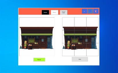 Aplicativo na sua fase inicial Recorte uma imagem em varias partes . O que da para criar com imagens recortadas em varias partes ? Animações , por exemplo , voc~e pode recorta o desenho de uma casa em pixel art e posteriomente usando um aplicativo externo fazer a animação das partes cortadas .