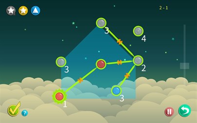 • Easy to learn and play but challenging • Relaxed no-rush environment • No ads, no subscriptions, and no in-app purchases • No internet connection needed to play • Does not require special permissions in your device • Safe for all ages • Clean and minimalist user interface • Option to pause and continue later • Original game elements like unbreakable connections, incompatible nodes and more • Almost impossible to get stuck in a level with the help system • Over 50 challenging levels • Background selection and an option to mute sounds • Can be played in English, Spanish or Chinese (中文)