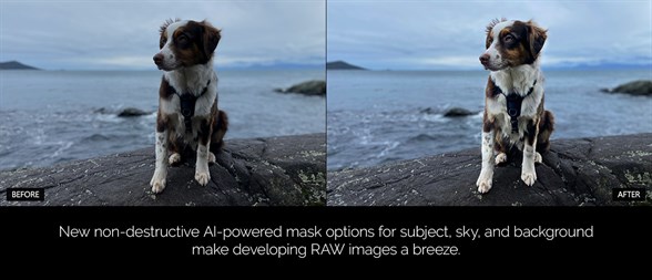 RAW Photo Editing Intuitive and non-destructive RAW photo editing at your command. Making and managing selections is fast and efficient thanks to the new Masking panel in Develop Mode. Here you will find the familiar selection tools you know and love – Develop Brush, Linear Gradient, and Radial Gradient – plus new one-click, AI-driven selection tools – AI Subject, AI Background, and AI Sky – to make the complex selections you need. Tweak your selection masks at any time and use them to apply a variety of adjustments on select parts of your image. Tools such as Color and Tone Wheels, Light EQ™, Noise Reduction, and more give you the power to correct color, fix lighting, repair, and restore image quality, all without permanently altering the original image.