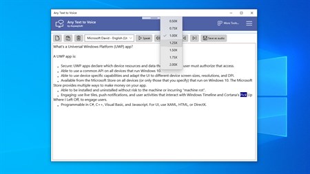 Any Text to Voice is a powerful text-to-speech app to read out loud text on PC or phone, and save text to audio files.